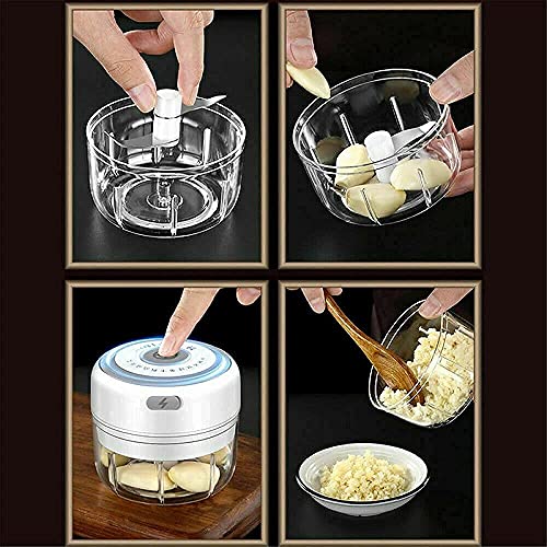Features: Electric Crusher: The electric crusher let you farewell to hand-pulling, which you can just press the button on the top to automatically crush it. Sturdy and Durable: The stainless steel blade is sturdy and durable, and can cut efficiently. The food-grade plastic in the cup does not contain BPA, can hold food safely, is strong and does not contain bacteria. Quickly Chop: The sharp blade of the garlic chopper can quickly chop garlic, seasonings, nuts, vegetables, meat, ice cubes, etc. It is very suitable for small foods. You can use it for cooking, baby food supplement, smoothie drinks. Easy Cleaning: Simply put food or ingredients into the mini food processor by hand, lock the lid and start with one button to quickly chop food. The bowl and blade can be separated for easy cleaning. The perfect kitchen tool for crushed garlic, crushed ginger, crushed fresh chili, crushed peanuts, ground meat, pumpkin paste, etc., which is a must-have artifact for food research lovers. Specifications: Power: USB charging Rated power: 30W Battery voltage: 3.7V Rated voltage: 5V Capacity: about 100ml Blade: stainless steel Model Number: Mini Crusher Chopper Type: Fruit & Vegetable Tools Food crusher: vegetable and fruit Tools: Kitchen tool Fruit & Vegetable Tools Type: Garlic Presses type: Rechargable Garlic Grinder Feature 1: Multifunctional Food Chopper
