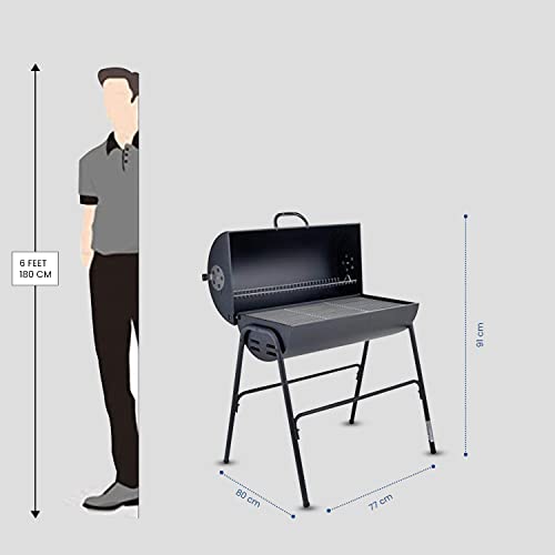 It’s equipped with a chrome plated warming rack, to keep food warm while you cook the next round Our Easy Drum Barbeque is one its kind in India. Its vents provides a temperature controlled environment for a great charcoal based Barbeque experience at Home. The product is coated using heat resistant and food grade powder and is safe to use. BBQ safety WARNING: Danger of carbon monoxide poisoning – never light this product or let it smoulder or cool down in confined spaces.