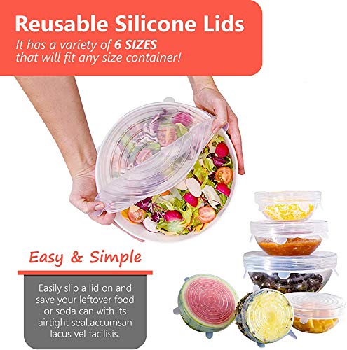 PETRICE Microwave Safe Silicone Stretch Lids reuseable Flexible Covers for Rectangle, Round, Square Bowls, Dishes, Plates, Cans, Jars, Glassware and Mugs (Free Size_Multicolor) (Set of 6)