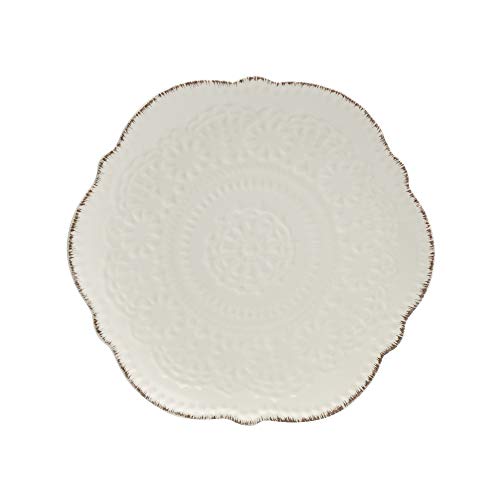 BEAUTIFUL DETAILS AND DESIGN: Simple, versatile cream serves as the backdrop for intricate dimpled patterns that circle each piece. The elegant look is enhanced with a hint of red along the scalloped edges.
