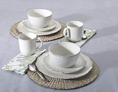 DINNERWARE SET FOR 4: This 16-piece dinnerware set, service for four, includes 4 each of: 11-inch dinner plate, 8-inch salad plate, 6-inch soup cereal bowl, and 12-ounce mug