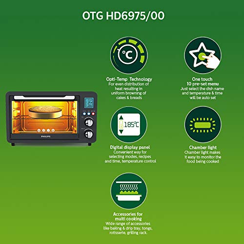 Includes: Includes Oven Toaster Grill, Baking Tray, Grill Rack, Tong, Crumb Tray and Skewer Rods , User manual, India Specific Recepie Book