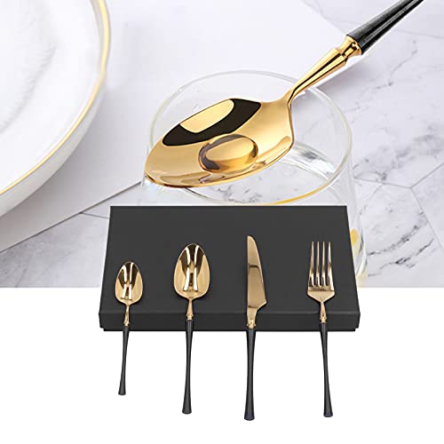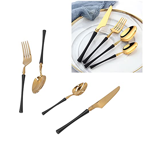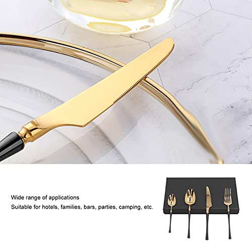 Portable Tableware, Black and Gold Tableware Flatware Rust‑Proof for Hotels Families Bars, Parties, Camping, Etc.(Xiaoman Waist Four-Piece Suit-Black Gold)