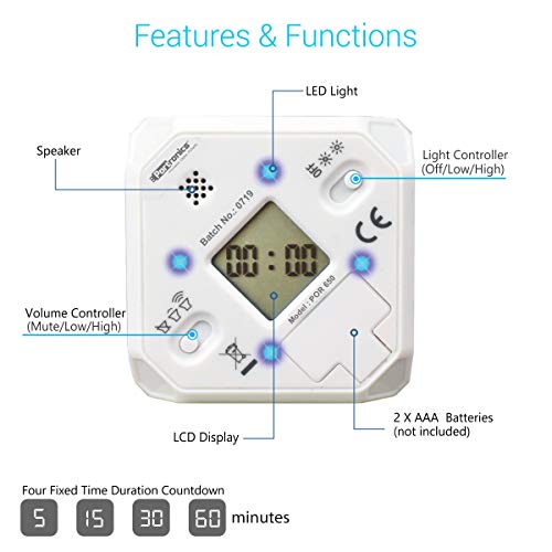 [4 Count-Down Timer Durations]- The min/max duration of countdown timers is 5, 15, 30 and 60 minutes. Simply keep the duration you want on top side face and countdown auto starts,No settings required