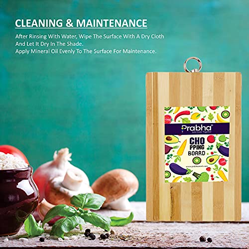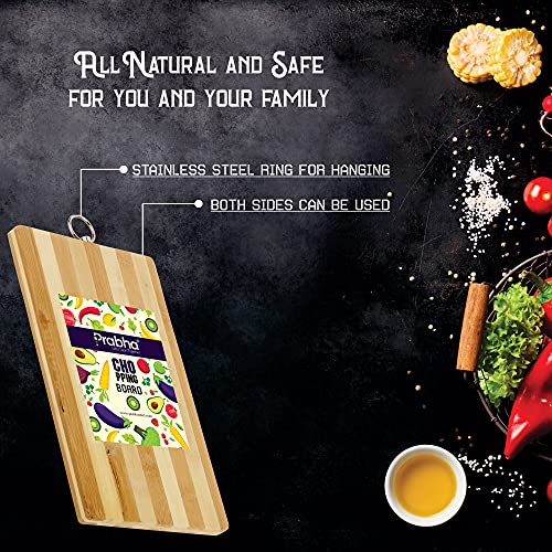 Prabha Premium Large Natural Bamboo Wood Chopping Board, Cutting Board for Kitchen – Vegetables Fruits Chopper Block, Butcher Block, Carving Board (Brown, S)