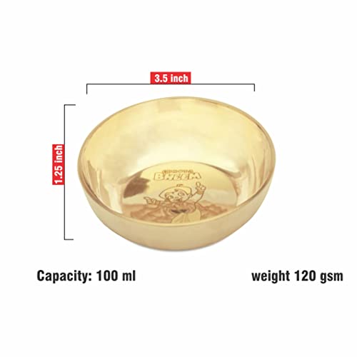 Dimention: 1 Bronze Thali 8 Inch, 2 Bronze Bowls 3.5inch and 3.5 Inch, 1 Glass 175 ML, 1 Spoon 5 Inch