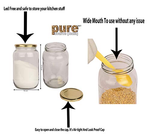 Pure Source India Glass jar Container with Air Tight Lid – 1000 ml, 6 Pieces, Clear