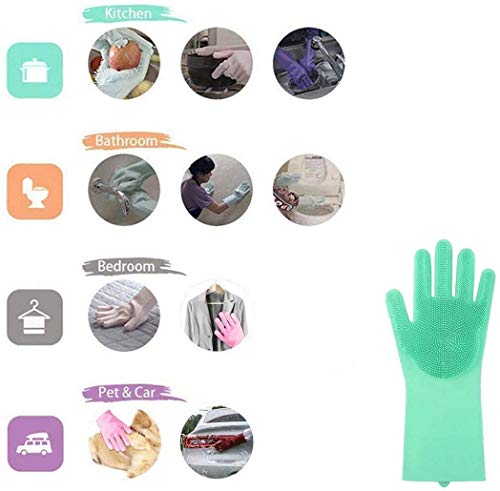 easy to clean – palms and fingers are covered with thick silicone bristles which can add friction and keep strong grip, also can be the alternative of dishwashing cloth quickly washes away oil stain but no harm to the kitchen utensils.