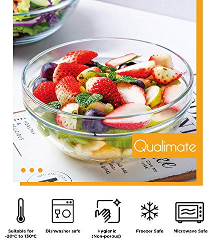 Qualimate Glass Bowl for Serving Mixing Stackable Microwave Safe Oven Bowls Set of 2, 1135 ml