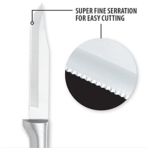 STAINLESS STEEL BLADE – The blade on the serrated paring knife is made from surgical grade, T420 high carbon stainless steel. The super fine serrations never need sharpening