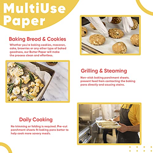 ❤️ No Sticky Or No Burning : Our Baking Sheet Are The Highest Grade Quality And Will Never Stick To Pan Or Burn. So, Forget Annoying Sticky Baking Paper Sheets or Baking Paper Roll For Oven That Need To Be Sliced. Also Our Parchment Paper For Baking Cake is Easy To Store Without Folding or Tearing. These Butter Sheet are also Used As Wrapping Papers. Food Wrap Roti Wrap And Chocolate Can Be wrapped in Chocolate Wrapping Paper Roll or Food Wrapping Paper Roll or Roti Wrapping Paper Sheet.