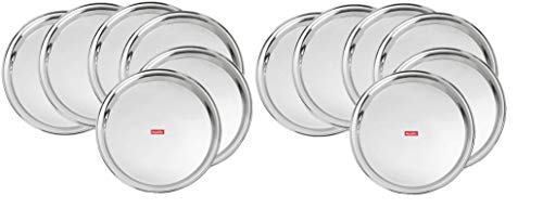 Redific Stainless Steel (Heavy Gauge) Mirror Finish Dinner Set/Dinnerware/Serveware/Thali/Bhojan Patra Set of 12 pc pcs Piece