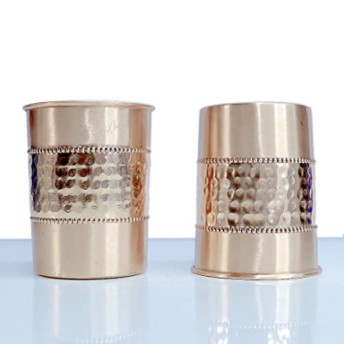 REYU Crafts (Set of 2) Pure Copper Half-Hammered Straight Glass Tumbler Set of 2, Drinkware, 300 ML Each, 80 Grams (Pack of 2)