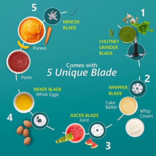 Comfortable grip and handle, Big & Super Sharp Blades For Instant Blending with heavy-duty 150W motor. Anti Burn and Heat Mechanism with 100% Copper Motor To Save Electricity
