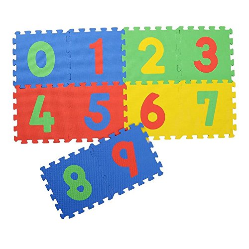 Riddhi Siddhi Industries Colorful Kids Play Puzzle Style Mat with Pop Out Numbers (0 to 9) Set of 10 PCs (Interlocking) 12” X 12” Each