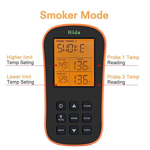 riida TM08 Wireless Meat Thermometer, Remote Cooking Food Barbecue Digital Grill Thermometer with Dual Probes for Oven Smoker Grill BBQ Thermometer Kitchen Tools(300 Feet)