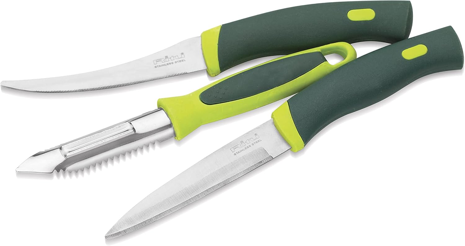 Ritu Stainless Steel Knife and Peeler Set, Green Ritu is a premium quality brand in kitchen tools. Being made from hard wearing plastic and stainless steel it is also top-rack dishwasher safe, no fiddly cleaning required and the blades are dull so they are very safe to use, even the kids can use it. Ritu Stainless Steel Paring Knife Vegetable & Fruit Cutting Straight Blade Knife for Professional and House Use, J-217 A good knife is a versatile blade that makes slicing loaves, tomatoes, and other foods a joyous exercise. Made from good quality material. Add a new knife to your kitchen. The color gives an elegant look.