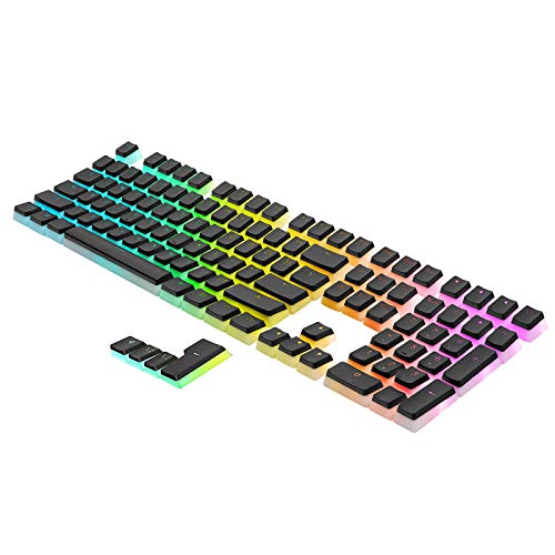 【Pudding Style】Translucent design.The top is Black and letter Backlit, the bottom is Translucent.The Dual-Layer Design have more Light through,making your RGB Keyboard Lighting even more Attractive and Dazzling.They can enhance the RGB effect of the Keyboard to create a Game Atmosphere, and the excellent tapping feel makes you immerse yourself in the Game.