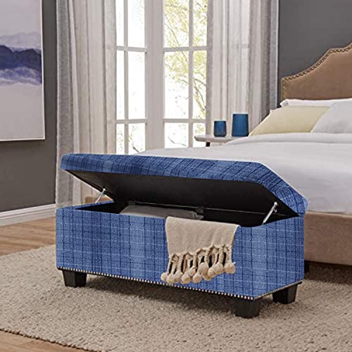 ROUNDHILL FURNITURE 2 Seater Upholstered Ottoman Bench with Storage Sofa Couch Pouffe for Living Room Bedroom Office (Blue Check)