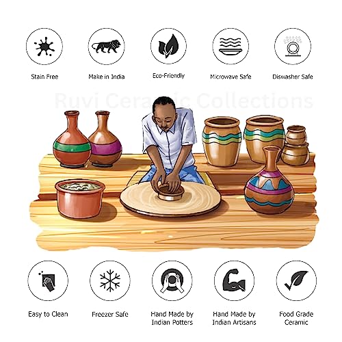 Ruvi Ceramic Collections offers ceramic tableware in different styles, sizes, and colors. The ceramic dinner sets Come with a range of products to choose from – dinner plates, snack plates, soup bowls, salad serving bowls, large serving bowls, long plates, platters, trays, casseroles, Beer Mug, snack bowls, serving bowls, bakeware, flavour plates, and dessert plates, Statue Pots Plant pots, etc. Our range of fine tableware can be used for special occasions and we also have ceramic tableware for everyday meals. We hope you browse through our selection and find something perfect for a gift, home, or your own collection of dishes. Rest assured that you are choosing the best when purchasing. These beautiful ethnic and traditional-looking Ceramic Items have been inspired by classic Indian Kitchenware and can be used for storage and preservation. It can also be used for decoration. A beautiful hand-glazed design in traditional color and shape accentuates the beauty of these Ceramic items. At The Decor Lane, we train and work with rural Indian Artisans to urbanize Indian Handicrafts and create lifestyle utility items. The Decor Lane picks and brings the very best of Indian artistry and craftsmanship.