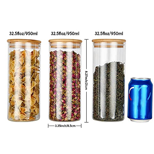 S S Glassware Glass Food Storage Jars Containers with Airtight Bamboo Lids Set of 3 Kitchen Glass Canisters for Coffee, Flour, Sugar, Candy, Cookie, Spice and More, (1400 ML) Set of 3 (3)