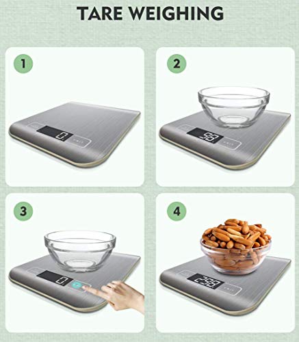 SIMPLE TARE FUNCTION: Baking scale with a separate tare button, you can subtract the weight of plate or container, to easily receive accurate readouts of only the ingredients or liquids.