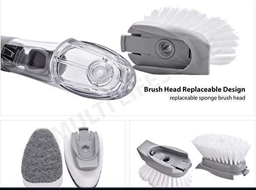 Complete Function: The kitchen dish brush is easily removing the bake on the pot with scrubber on backside of the brush and even you don’t need to change your cleaning tools. Automatic soap dispensing can avoid the waste of clean fluid and save your money.