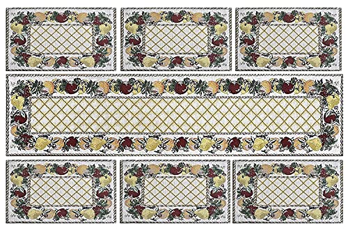 Samaaya Placemats with Table Runner Sets Place Mats,Set of 7 Beautiful, Easy to Wash Linen Fabric Dinning Table Mats 6 pcs (13 x 18) with 1 Runner (13 x 54) Kitchen Tablemat,New Cross Fruit Design