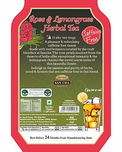 Sancha Tea Boutique Rose & Lemongrass Herbal Tea Bags, Caffeine Free Tea(Pack of 15) 100% Biodegradable Tea Bags, Pyramid Tea Bags, Lemon Grass Tea…