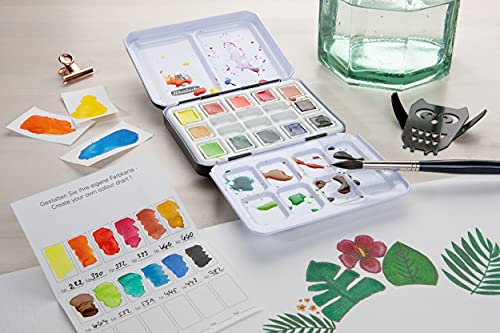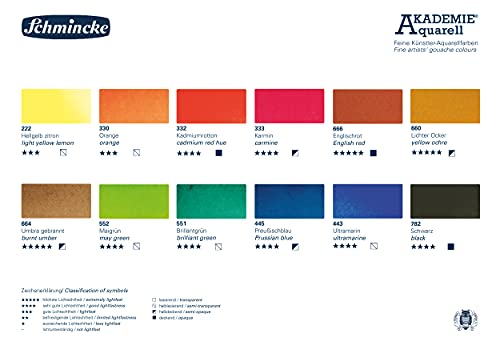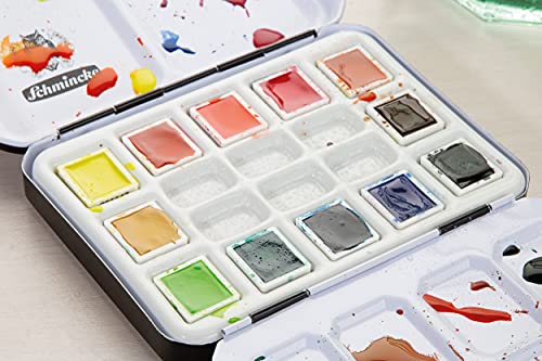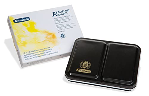 Schmincke Watercolour, Academy Watercolour Painting Box, Metal Box, 12 x 1/2 Cups + Space for 12 Additional 1/2 Cups