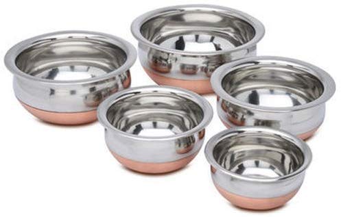 MATERIAL: Copper Bottom. Premium Quality Mirror Finish Stainless Steel Deep Vessel /Handi / Cooking Pot For Kitchen. Export Quality Stainless Steel Making The Utensil Highly Durable, Long Lasting & Rust Free. Giving It A Long Live, Keeping It Beautiful For Years /Generations. Less Stain Steel Cookware.