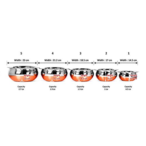 DESIGN: These Classy Copper Bottom Handi Are Is Only Attractive To Look But Also Has A Very Large Capacity. They Can Be Used Not Only To Cook Food, But At The Same Time Due To Their High Storage Space And Attractive Looks, You Can Use Them As Cookware As Well As Serveware On Your Table Top.