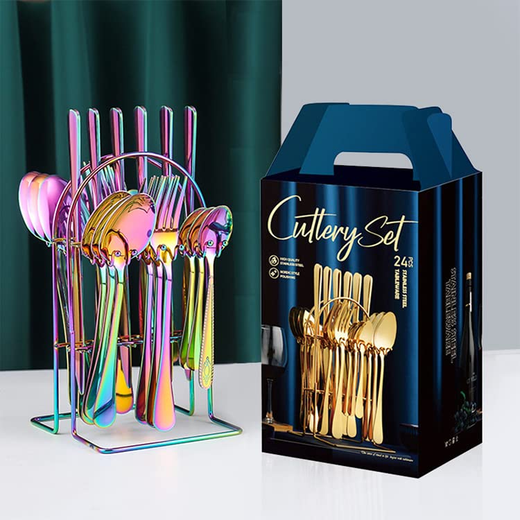 Be the first to review “Seedware 24 Pcs Set with Stand Stainless Steel Flatware Set,Mirror Polished Cutlery Utensil Set,Durable Home Kitchen Eating Tableware Set,Include Fork Knife Spoon (Rainbow)”