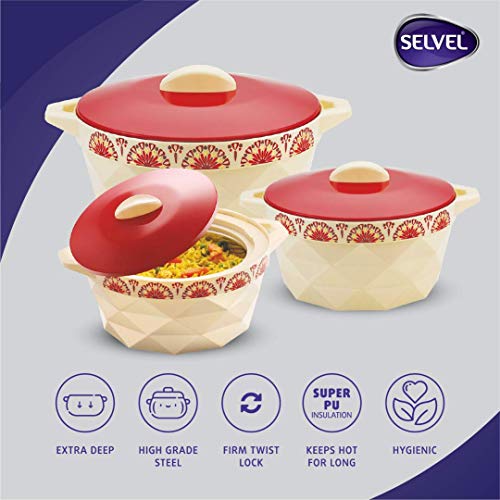 STAINLESS STEEL INNER: SELVEL Giving shape to life! Casseroles is made of Food Grade SS664 Material for Best Health & Hygiene. HOT & COLD: Keeps Food Hot & Cold Upto 6 Hours.