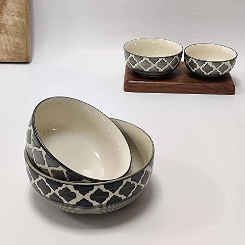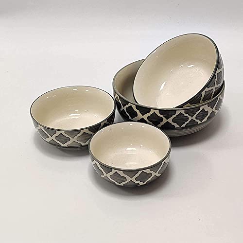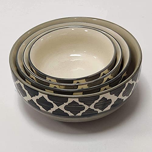 SEPARATE WAY Ceramic Serving Bowl, Mixing Bowl, Cereal Bowl, Soup Bowl, Hand Painted 4 Different Size Bowl. (1000ML, 750Ml, 500Ml, 300Ml) (Grey)