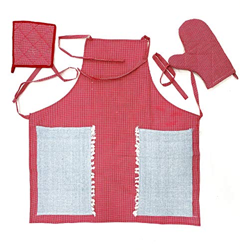 Shabari Emporium (A Chhattisgarh Govt. Undertaking) Apron with Pot Holder & Oven Mitten KCHNLNSET_2A