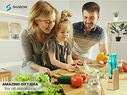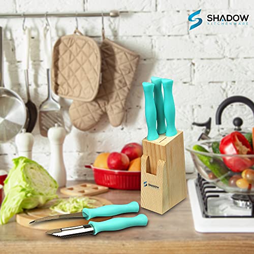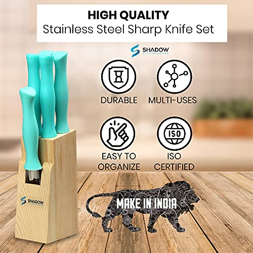 Shadow Kitchenware Stainless Steel Sharp Knife 6 Pieces Set for Home Kitchen Quality Tool with Wooden Stand Block_XC_VN_85