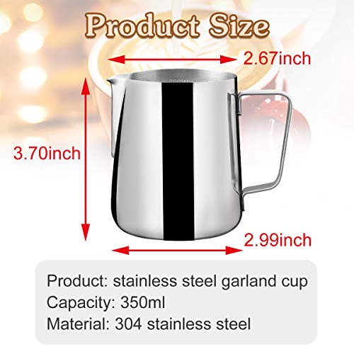 SHAFIRE 350ml Kitchen Stainless Steel Craft Coffee cappuccinos Milk Latte Jug Cup Frothing (Silvery)
