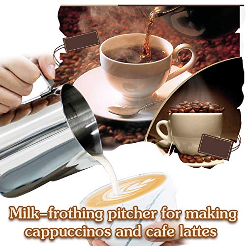 Milk Frothing Pitcher is made of stainless steel, rust-proof, stain-proof and crash-proof, heat-proof, unbreakable by daily use.