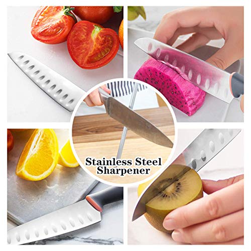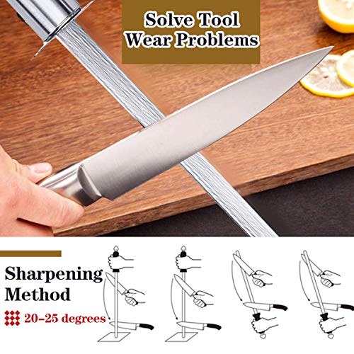 knife sharpening steel rod is for all types of knives, including kitchen, household, sporting and pocket knives; sharpens standard and serrated edge knives