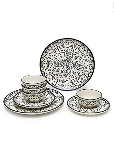 Be the first to review “Shilpkara Moroccan Bloom Hand Painted Studio Pottery Ceramic Plates for Dinner Plates with Katoris (8 Pieces, Serving for 2,Black)-Dinner Serving Set”