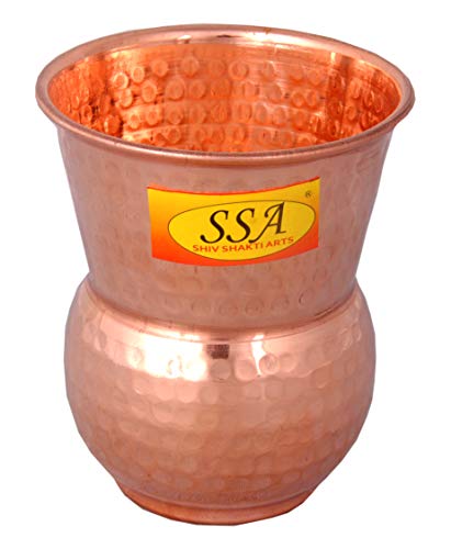 Shiv Shakti Arts® Pure Copper Glass | Tumbler | Designer Matka Glass Use in Hotel, Resturants Drinkware (Hammer Matka Design – Brown, 350 ML) – Set of 1