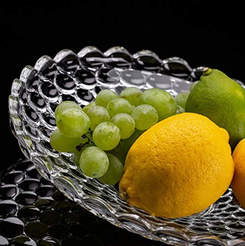 Shopiable Store Glass Bubble Pattern Fruit Bowl Dining Table Serving Vegetable Storage Tray Round Transparent Pack of 1 (9.5 Inch)