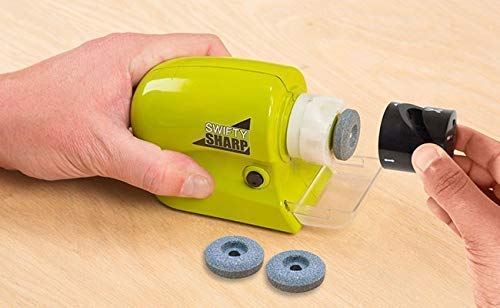 * Equipped with a professional grade, high-speed sharpening stone, the Swifty Sharp restores the razor’s edge on any blade in just seconds, from knives to scissors to small hand tools.