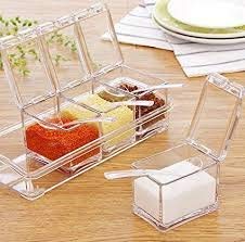Be the first to review “SHREEJI MART Crystal Seasoning Acrylic Box Pepper Salt Spice Rack Plastic 4 Box with Spoons Kitchen See Through Storage Containers Cooking Tools”