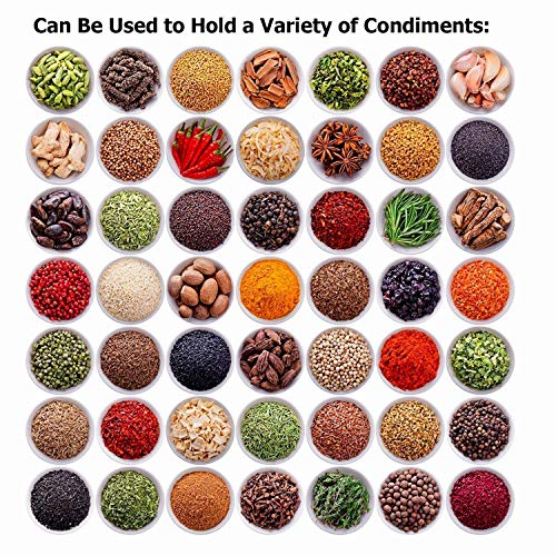 4 Sets condiment dispensers With 4 serving spoons included, with a non-slip tray to protect all seasoning box. Can be used to hold a variety of condiments Like salt, sugar, pepper, spice, corn starch.