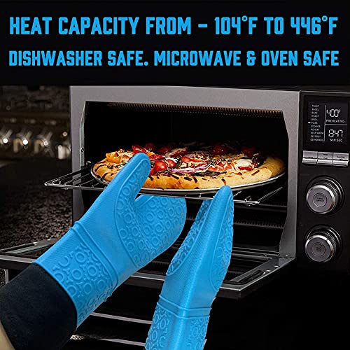 EASY TO CLEAN AND STORE – Made from BPA-free silicone, our silicone gloves are stain resistant and easy to clean. Each oven mitt comes with a cotton loop that can be hung in a closet, near the grill, or any hook.