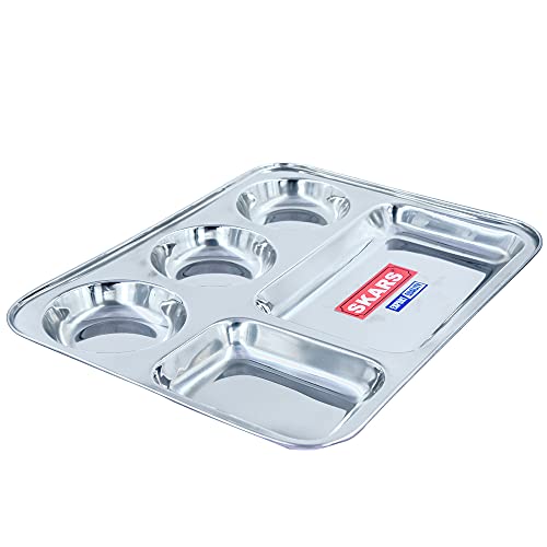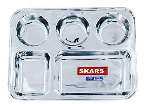 Multipurpose Use: SKARS Dinner Plate is Kids-friendly and perfect for both parents and children’s to use daily. The plate is designed by considering all perspective of meals which make itself a complete set. With the five compartments one can easily have its breakfast dinner and Lunch without any extra utensil support. It is very convenient to use. Steel plate saves money and environment by avoiding pollution through buying disposable plate.