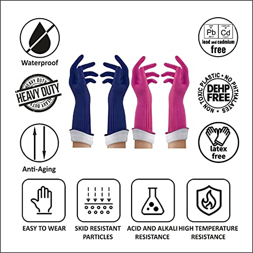 VERSATILE:These gloves are ideal for multiple uses in and around the house. They are perfect for dishwashing, cleaning kitchen, bathroom, toilet, washing clothes, gardening and doing other household chores.