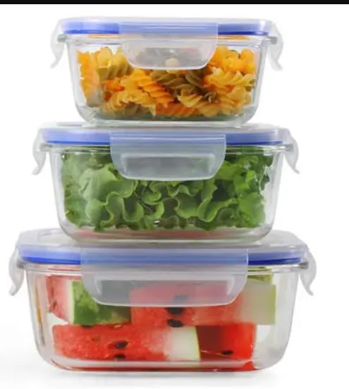 skyzone Extra Large Food Storage Containers with Airtight Lid 3 Pcs [3 containers with lids] Microwave/Oven/Freezer & Dishwasher Safe PCS 3
